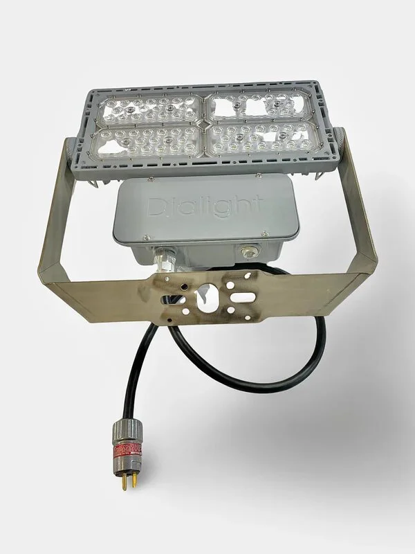 Magnetic Base 12000L Dialight Flood light suitable for Class 1 Division 2, Zone 2 hazardous locations , 120-277V, 12,000 Lumens, 81W comes with 15A Male and 20A Female Crouse hinds cord ends.