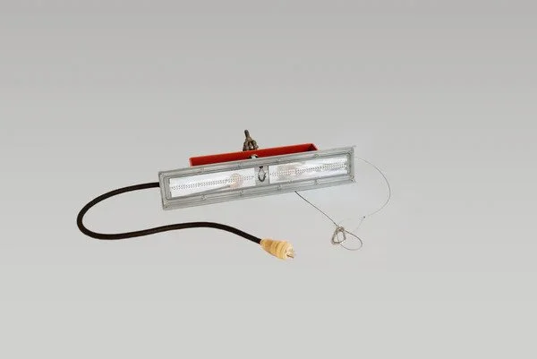 120-277V, 37w, 4450 lumen, 2 foot Dialight linear light fixture complete with scaffold bracket, safety cable, 12/3 SOOW Cable, cord grips, 15A Male plug. Approved for use in Hazardous Class 1 Division 2, zone 2 locations.