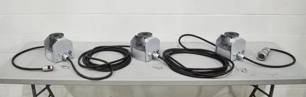 Quantity of three Nemalux JR fixtures daisy chained together to create a string of lightweight, compact light fixtures that produces 5000 lumens (per fixture). Further chains of fixtures may be plugged in.